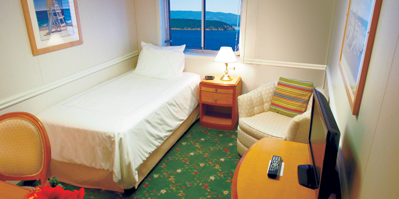 Find modern amenities and relaxing comfort in our 226 sq. ft. single staterooms. With a large picture window, Twin size beds and sizable bathrooms, these single staterooms are perfect for solo travelers.