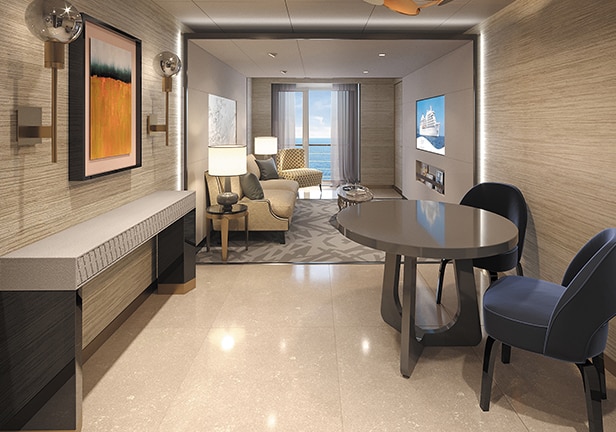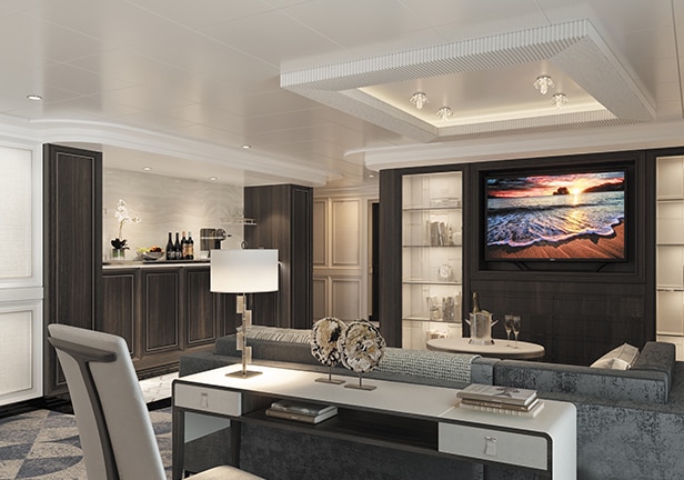 In an atmosphere that’s reminiscent of a personal library in an elegant, stately home, Regent Suite guests may gather in The Study to privately dine on meals from the adjacent Chartreuse and Prime 7 restaurants. Such an exclusive opportunity further establishes the Regent Suite on Seven Seas Splendor™ as the pre-eminent luxury accommodation on the high seas.